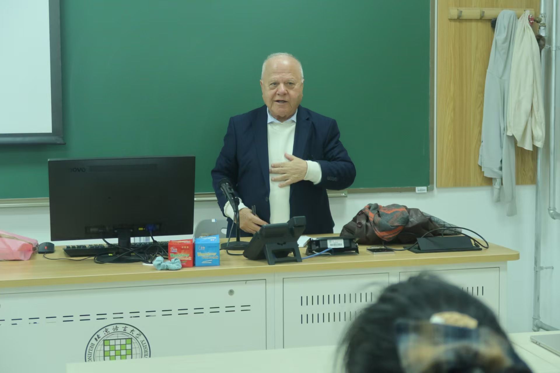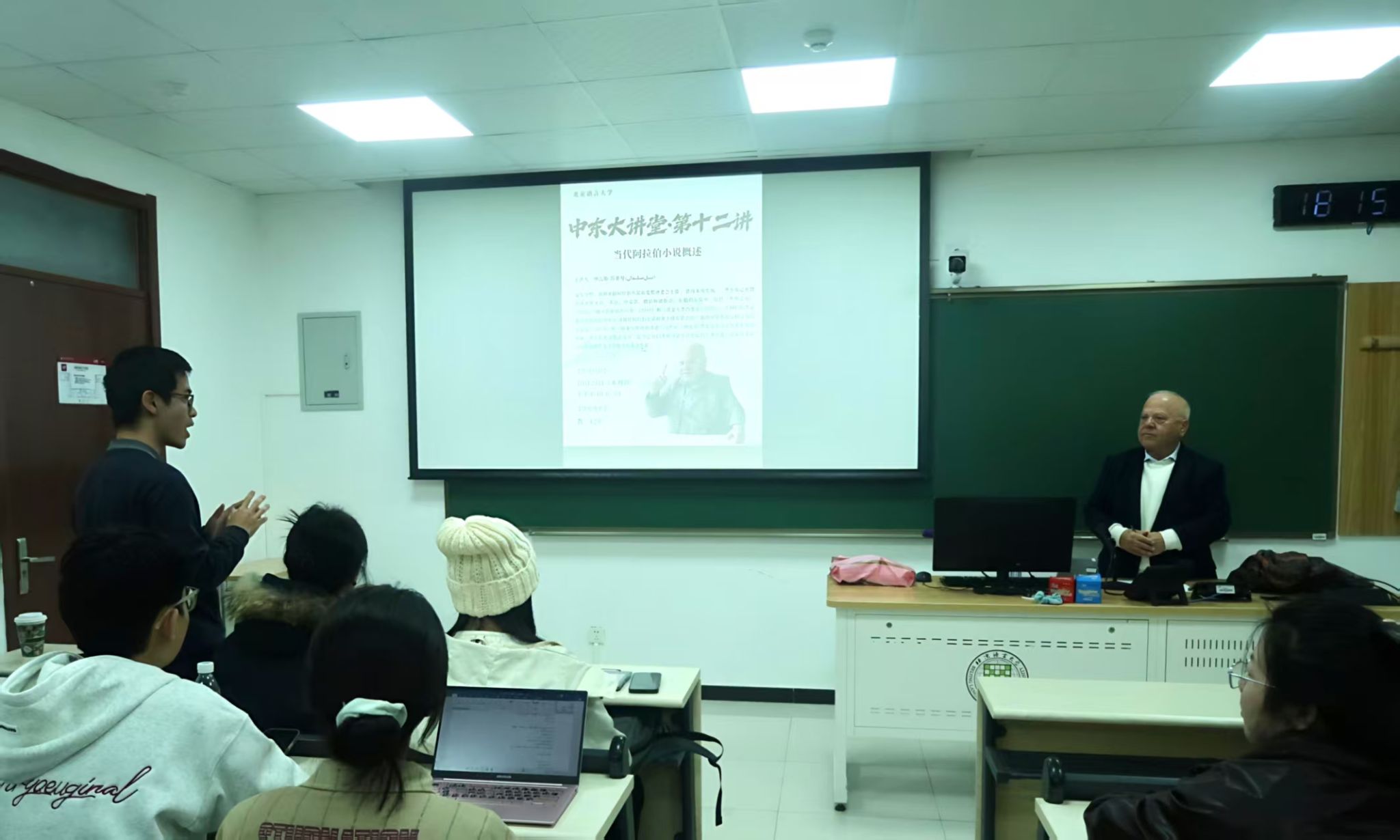 北语新闻网10月24日电(通讯员 龚辞修 摄影 龚辞修)为进一步贯彻落实学校和学院关于加强学风建设的工作要求,提升学生综合素质与核心竞争力,10月23日,外国语言文化学院“中东大讲堂”第十二讲成功举办。本次讲座特邀叙利亚籍著名作家、阿拉伯小说布克奖评委会主席纳比勒·苏莱曼先生主讲,围绕“当代阿拉伯小说概述”展开介绍,内容翔实,分析透彻,带领师生领略阿拉伯文学的独特魅力。