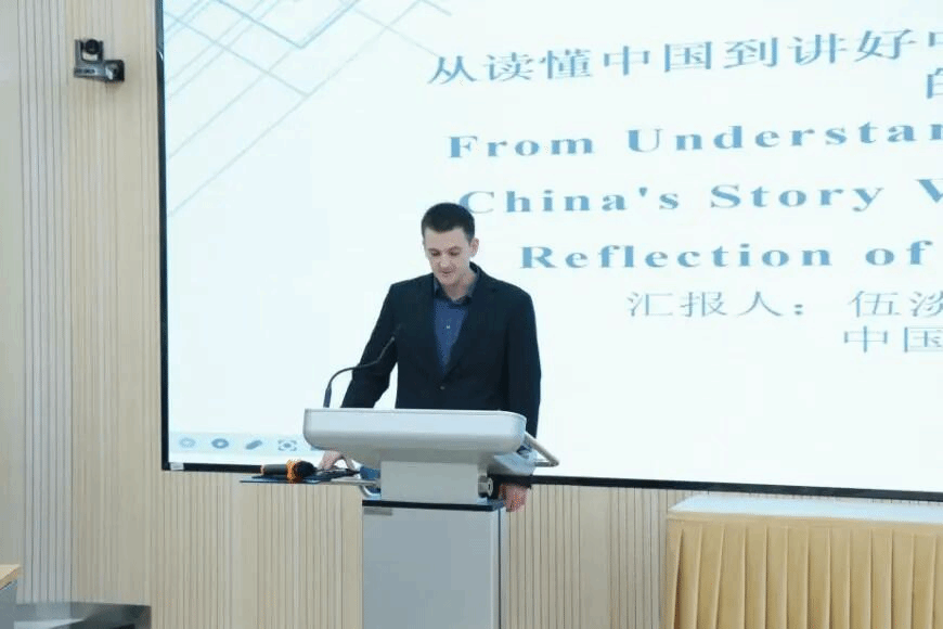 首先,伍淡然校友特别分享了自己采访两会和跟唱国歌的亲身经历,娓娓道来了选择学习中文、来到中国并投身记者行业的初心与缘由。他回顾了在北语的学习时光以及在中国日报的工作历程,为同学们提供了宝贵的学习建议和职业指导,助力大家更好地迈入传媒行业。