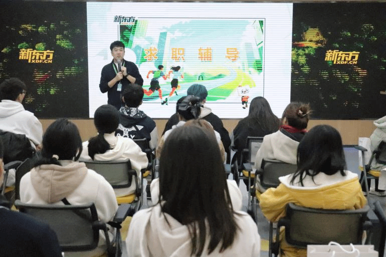 参访伊始,北京新东方学校人力资源部总监王斌老师从企业历史、经营范围、企业文化、人才培养四大维度展开介绍,梳理了新东方深耕行业的发展脉络,展示企业内人才成长体系,清晰传递出新东方“成为中国优秀、令人尊敬、有文化价值的服务机构”的定位,帮助同学们快速建立企业宏观认知。随后,我校优秀校友王研就企业招聘、入职培训、一线履职三个阶段说明新东方入职流程,同时结合自身工作感受,分享了从校园到职场的转型心得,鼓励参访同学勇于尝试和探索,发掘自身多元可能性。新东方企业招聘负责人颜寒老师围绕企业认知、人才需求、目标岗位三个方面,为大学生校招做职业生涯规划指导。颜老师凭借多年招聘经验,帮助同学们明晰了简历投递方式和企业选择路径,并提醒已有就业意愿的同学提早规划、丰富履历,提升个人市场竞争力。