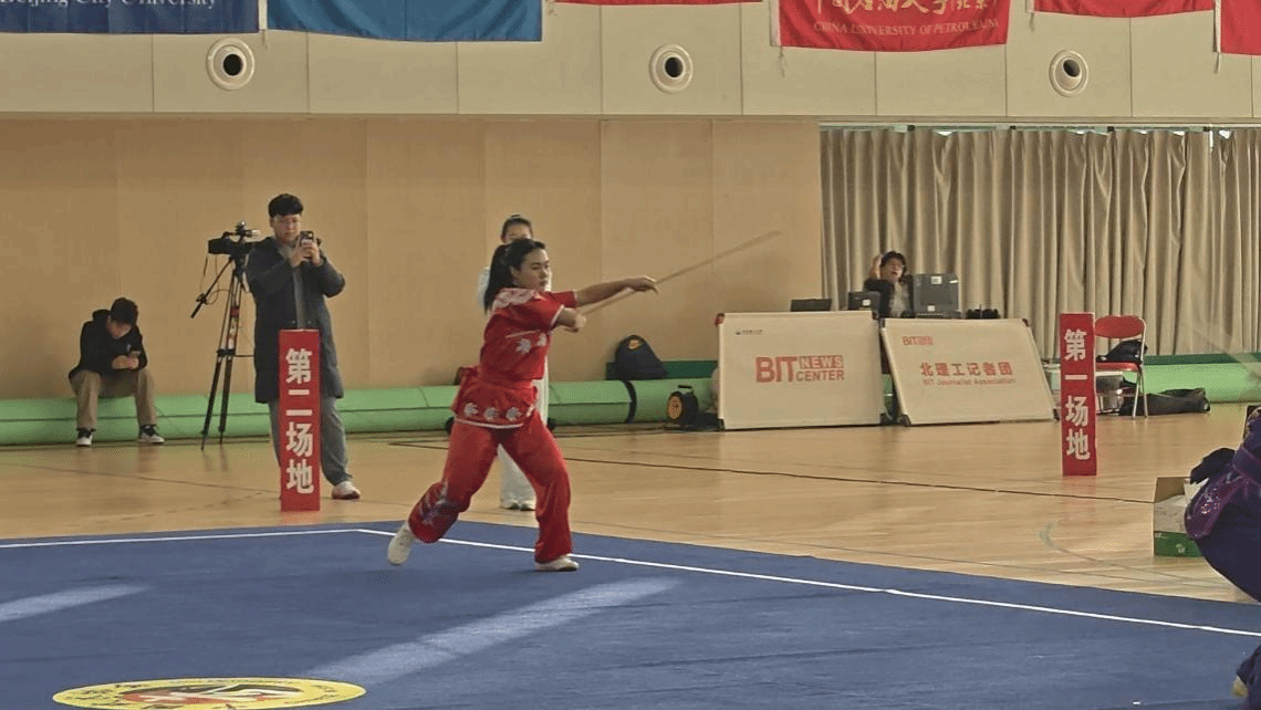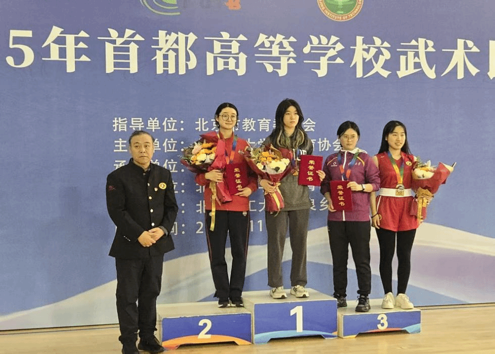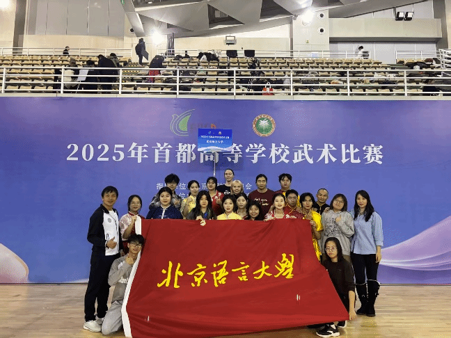 北语新闻网11月11日电(通讯员 任飞飞)11月8日,由北京市大学生体育协会主办的2025年首都高等学校武术比赛在北京理工大学(良乡校区)举行。我校武术队中外运动员在主教练任飞飞的带领下,与来自44所院校的394名运动员同台竞技、激烈角逐。最终,我校武术队斩获1枚金牌,同时有多个项目获得前八名的佳绩, 为学校赢得了荣誉。
