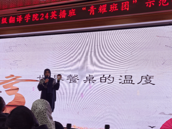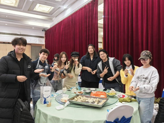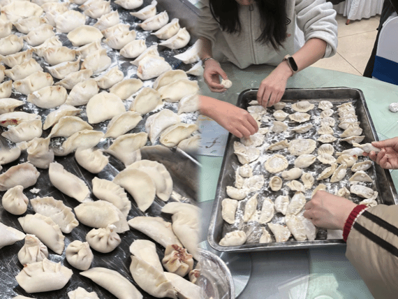 在五色土手作环节结束后,学生代表为大家带来了《TED饺子简史》的英文配音演绎片段,随后大家开启了“包饺子”环节。从“手作暖意”的亲手制作,到“味寄团圆”的冬日味道分享,大家不仅体验了中华传统美食的制作乐趣,还聆听了来自日本、孟加拉国同学分享的本国“冬日味道”。饺子虽形态各异,却承载着对温暖与团聚的珍视。
