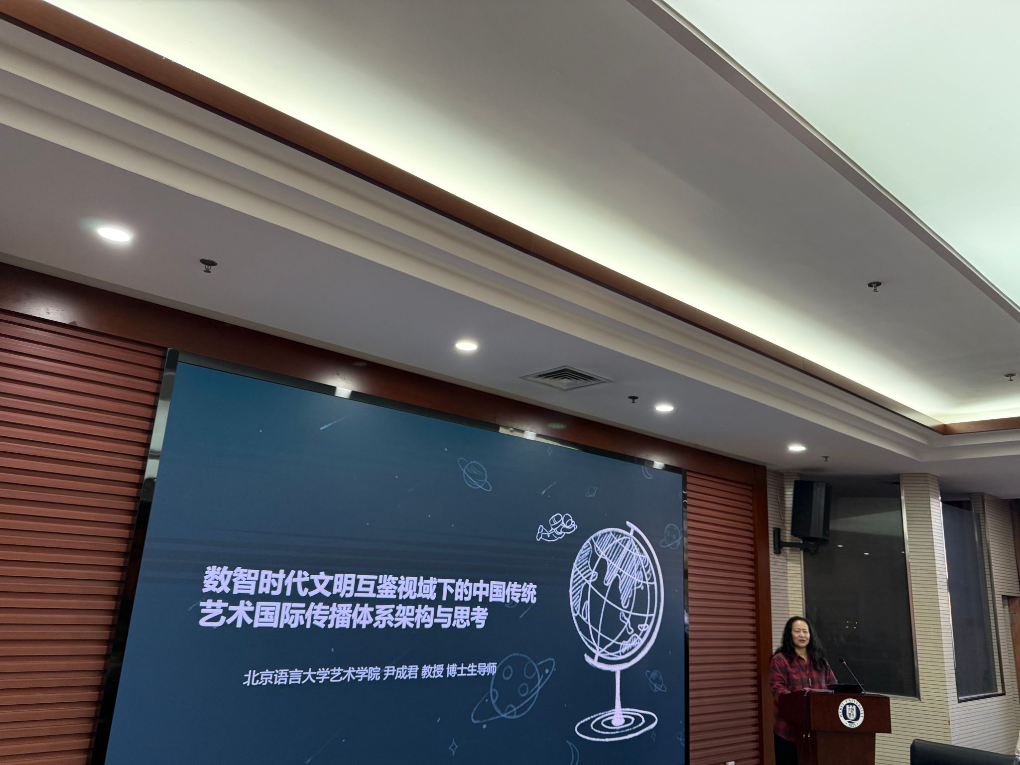 尹成君教授发表主旨演讲《数智时代文明互鉴视阈下中国艺术国际传播之架构与思考》,提出“中国艺术国际传播的意义构建—认知争夺—艺术认同—共同体认同”四阶段理论框架,强调在数智时代应以文明互鉴为核心,推动全球价值共鸣。与此同时,她还担任第二议题分会场评议人。鉴于其在国际艺术传播与文明互鉴研究方面的长期贡献,本次大会宣布聘任其为中国艺术学理论学会理事。