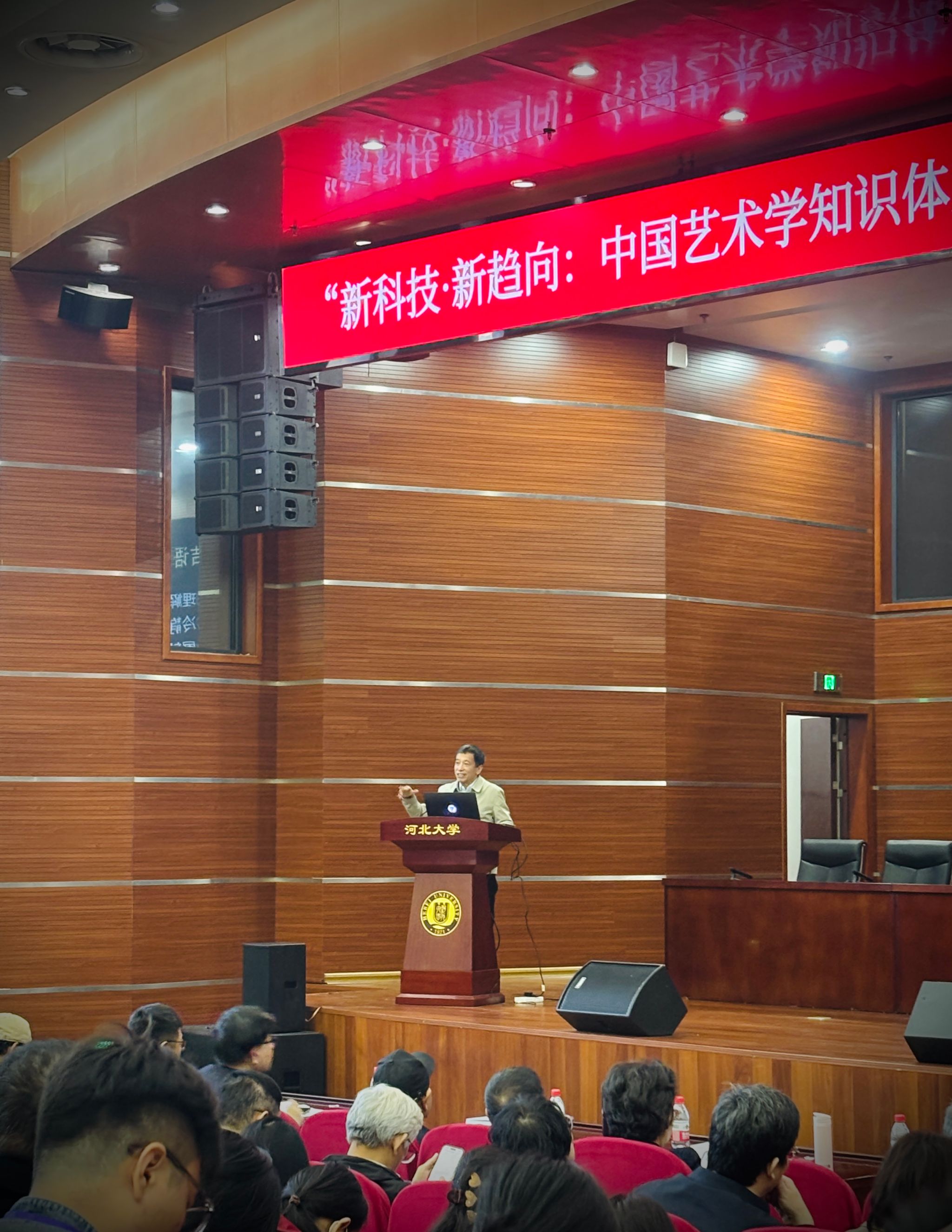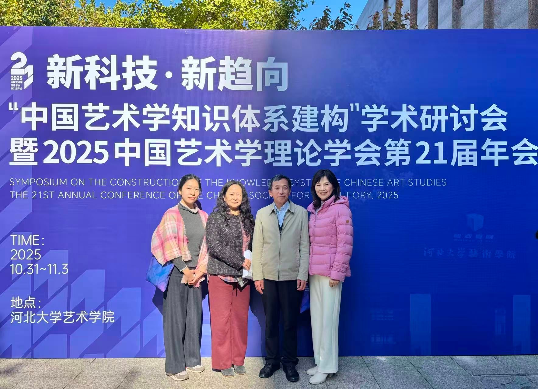 北语新闻网11月17日电(通讯员 蒋含韵 摄影 蒋含韵)11月1日至2日,以“新科技·新趋向——中国艺术学知识体系建构”为主题的2025年中国艺术学理论学会第二十一届年会在河北省保定市召开。会议由中国艺术学理论学会主办,河北大学艺术学院承办,东南大学艺术学院、上海大学上海电影学院、上海戏剧学院、杭州师范大学、中国传媒大学艺术研究院等多家单位协办。来自全国百余所高校和科研机构的专家学者齐聚保定,共同探讨科技进步背景下艺术学学科建设的新方向。北京语言大学特聘教授王一川、北京语言大学艺术学院院长陈霞教授、尹成君教授及青年教师蒋含韵受邀出席会议并作发言。