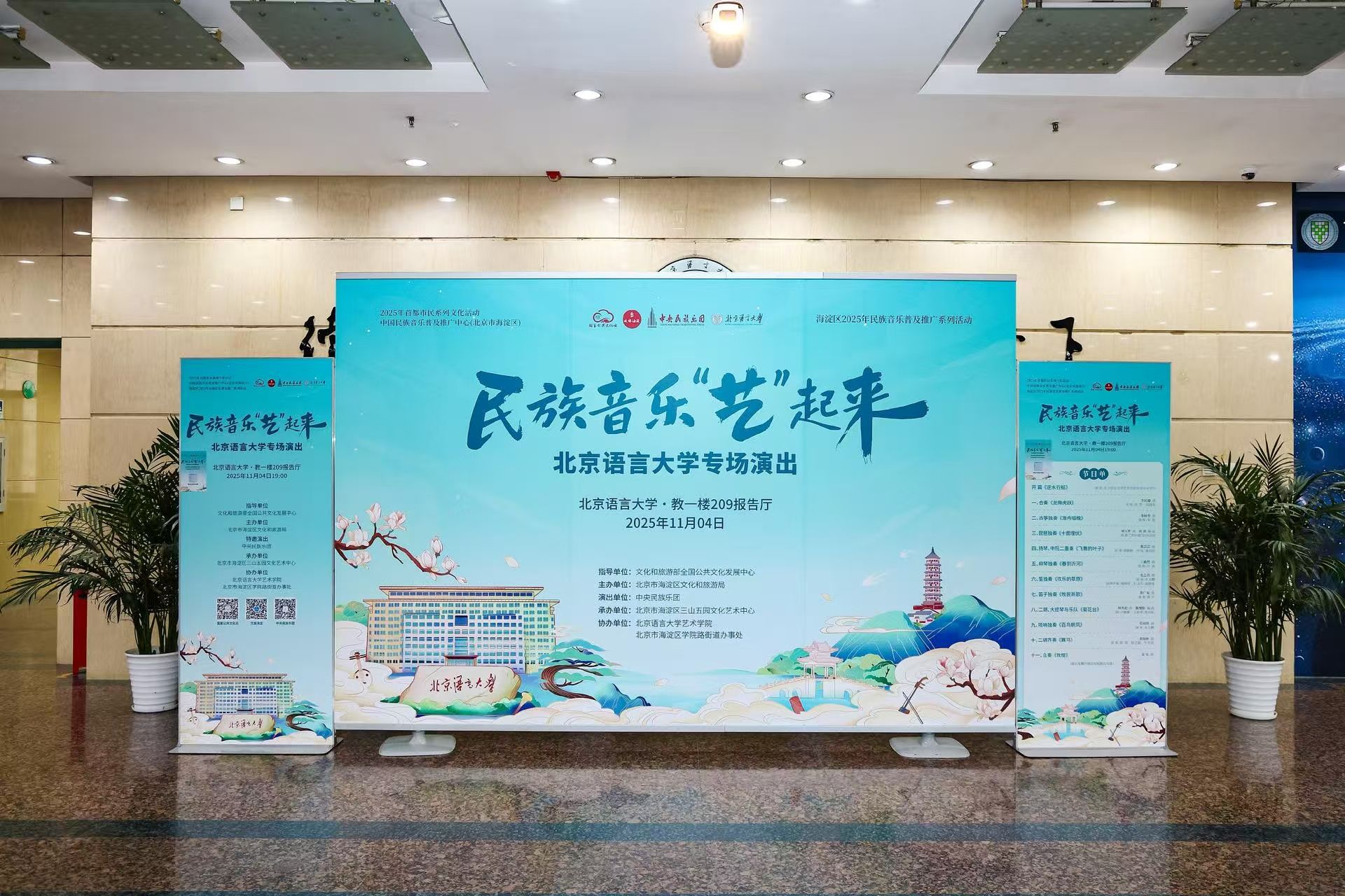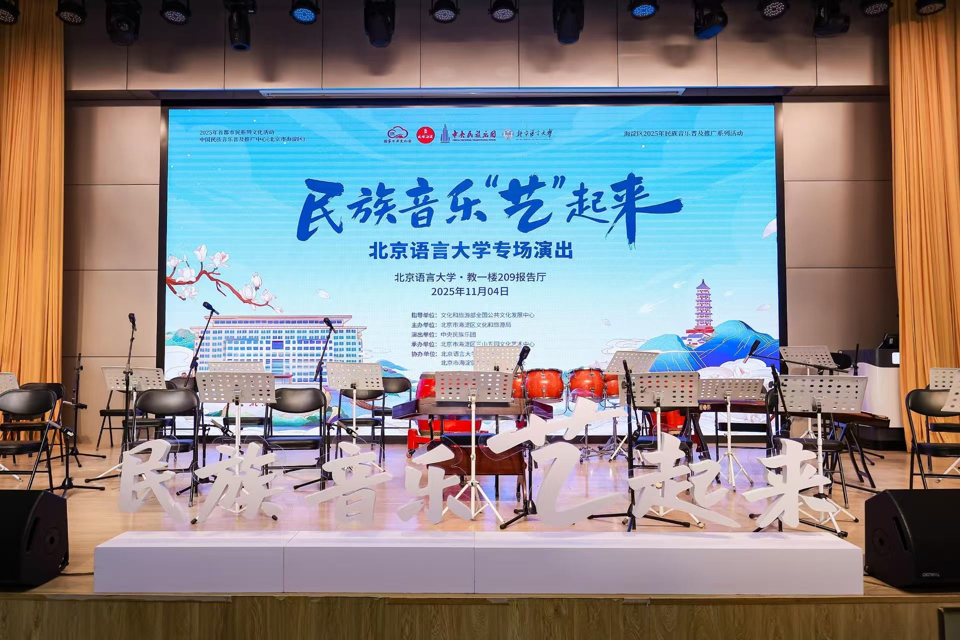 北语新闻网11月17日电(通讯员 张振伟 摄影 罗淼淼)11月4日晚19:00,教一209报告厅座无虚席,掌声与乐声交织成温暖的文化共鸣——“民族音乐‘艺’起来”惠民演出北语专场在此圆满落幕。这场由文化和旅游部全国公共文化发展中心指导,海淀区文化和旅游局主办、海淀区三山五园文化艺术中心承办、北京语言大学艺术学院与学院路街道协办的演出,以国乐为桥,为中外师生打造了一场兼具传统底蕴与创新活力的听觉盛宴,不仅让丝竹雅韵浸润人心,更完美诠释了“以民乐为桥,促文化互鉴”的活动宗旨。活动取得良好反响,现场400余人参加;“文旅海淀”进行了视频和图片直播,线上近50000人次观看。