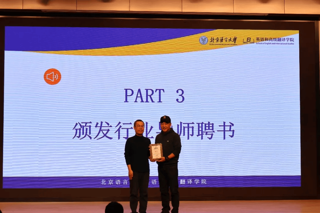 分享会伊始,英语和高级翻译学院党委书记王秋生老师为季小军校友颁发行业导师聘书。此举旨在充分发挥优秀校友的实践智慧和资源优势,为学生的职业发展规划与实践能力提升提供精准指导,有力促进人才培养与行业需求的高质量对接。