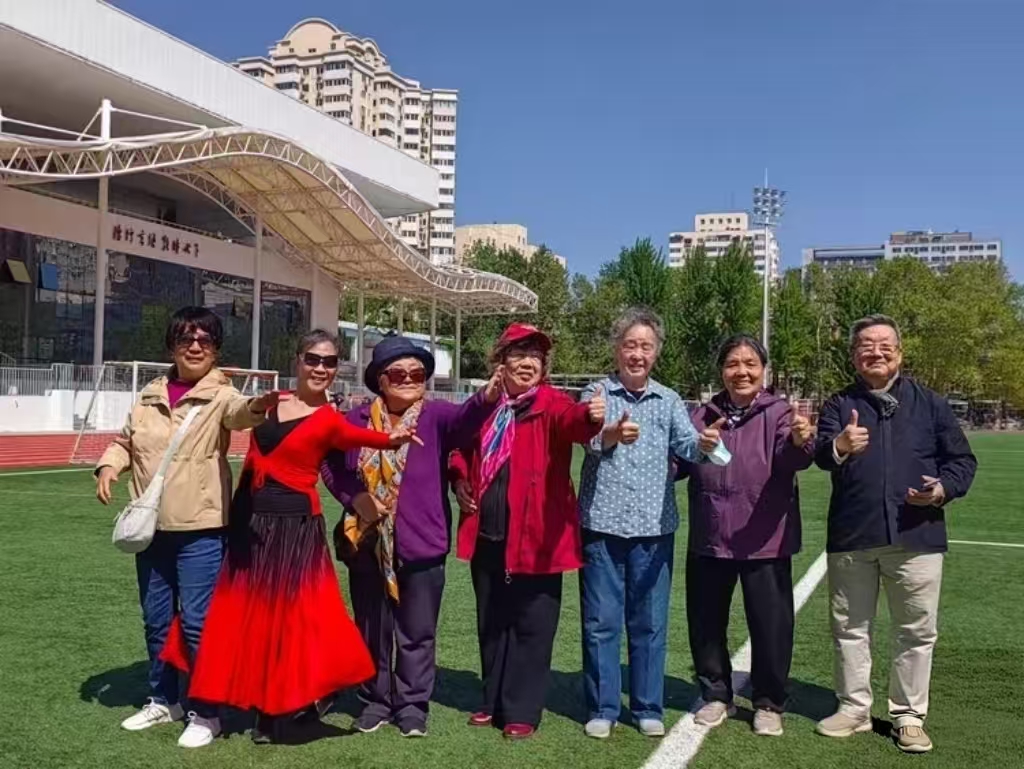 四月的北京,天光澄澈,风物清嘉。在北语风雨操场——这座融现代建筑美学与人文健身理念于一体的开放空间里,我们这群离退休老同志以脚步丈量活力,以笑语传递安康。这里没有高墙深院,只有弧形钢构穹顶,而今日之聚,是共学、共练、共欢的银龄盛事。