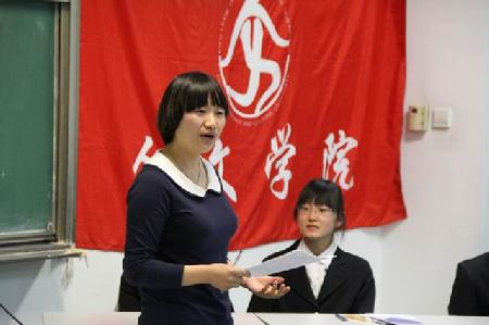 随后,五位评委离席讨论比赛结果。短暂的交流与协商之后,评委重新回到比赛现场,校辩论队队长汪莹对此次辩论赛进行了客观公正的点评。首先她肯定了双方的精彩表现,然后从发言态度、材料引用、时间分配等方面提出了宝贵的建议,让辩手们发现了自己的不足,明确了改进方向。最后,主持人公布了比赛结果,反方一辩裴晓倩荣获“最佳辩手”称号,正方(来自对外汉语3班的代表队)则摘得了此次辩论赛的桂冠。