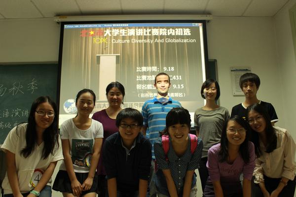 2012年9月18日,高级翻译学院“演讲青春飞扬”——北京市大学生英语演讲比赛院内初选在教二楼431成功举办。高翻学院老师Peter Higgins、姚虹,研究生张丽担任评委,10级英翻娄思齐以第一名身份成功晋级,并将代表高翻学院参加校内选拔赛。