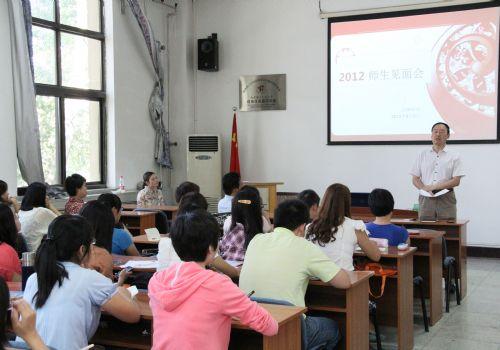 2012年9月5日,对外汉语研究中心2012级新生导师见面会在主北253举行。今年,中心又迎来42名中国硕士研究生,12名外国硕士研究生。中心负责学生工作的王建勤教授对2012级新生的到来表示热烈欢迎,并向同学们介绍了中心的情况。之后,中心的导师们依次介绍了自己的研究领域和研究方向、也对学生提出了希望和要求。在介绍中,有的老师风趣幽默,引得同学阵阵笑声;有的老师虽然言词朴实,但句句真理,让大家获益匪浅。见面会的气氛温馨而热烈,中心老师谦虚严谨的风格深深地感染了在场的每一位同学。