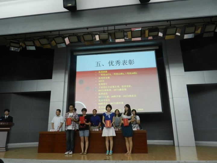 会上,来自08级朝鲜语一班的王一通过与大家分享自己备考与申请学校的痛苦与历炼,希望大家要坚持自己的梦想并付之持之以恒的努力。10级日语2班班长陈平同学与大家分享了这一学年他们班围绕“读书·实践”主题而展开的班团建设活动,并表示通过一系列集体活动,不仅有利于加深了同学之间的了解,更促进了良好班风学风的形成。日韩语系学生会主席肖婷婷代表学生会发言。她总结了第一届日韩语系学生会上一学期的工作情况与成果,秉承着“让优秀成为一种习惯”这一理念,第一届日韩语系学生会致力于打造属于学生自己的学生会,成功地为同学们提供了展示自己的更宽广的舞台。