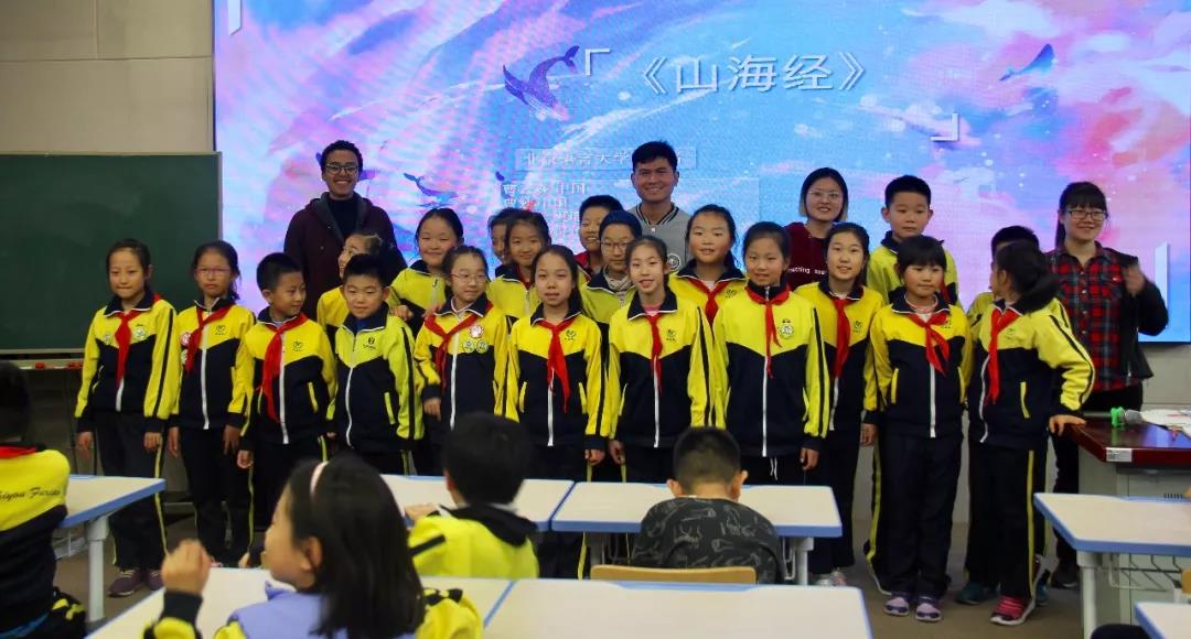 中午,志愿者们到达石油附小,随后开始了本次“七彩课堂”活动。首先,四个志愿者们给小同学们介绍了中国古代传说故事《山海经》,故事人物和形象在志愿者们的讲解下变得栩栩如生。志愿者们还和小同学们进行了游戏互动,让小朋友们扮演《山海经》里的人物,进行有趣的角色扮演游戏。教室内氛围活跃,同学们十分积极。