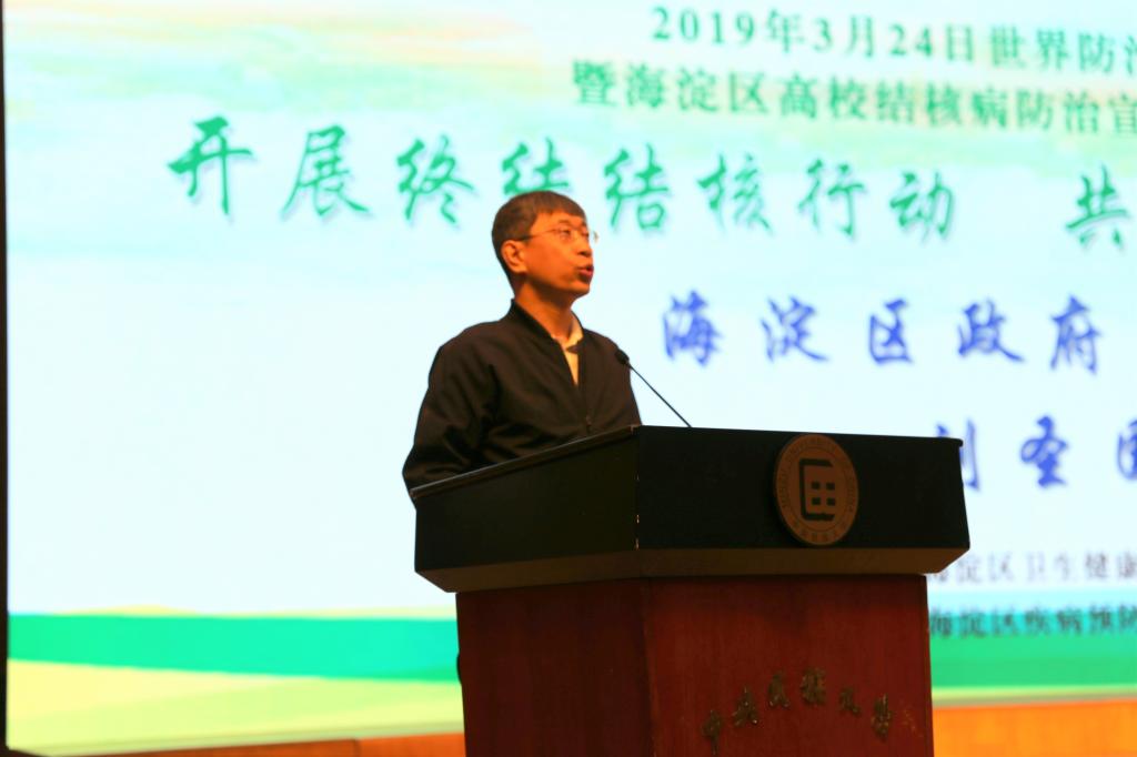 随后,出席活动的领导嘉宾共同启动了“海淀区高校结核病防治宣传周”。紧接着,北京市卫健委刘泽军副巡视员发表讲话,他对海淀区的结核病防治工作给予充分肯定,并对以后的工作提出新的要求。