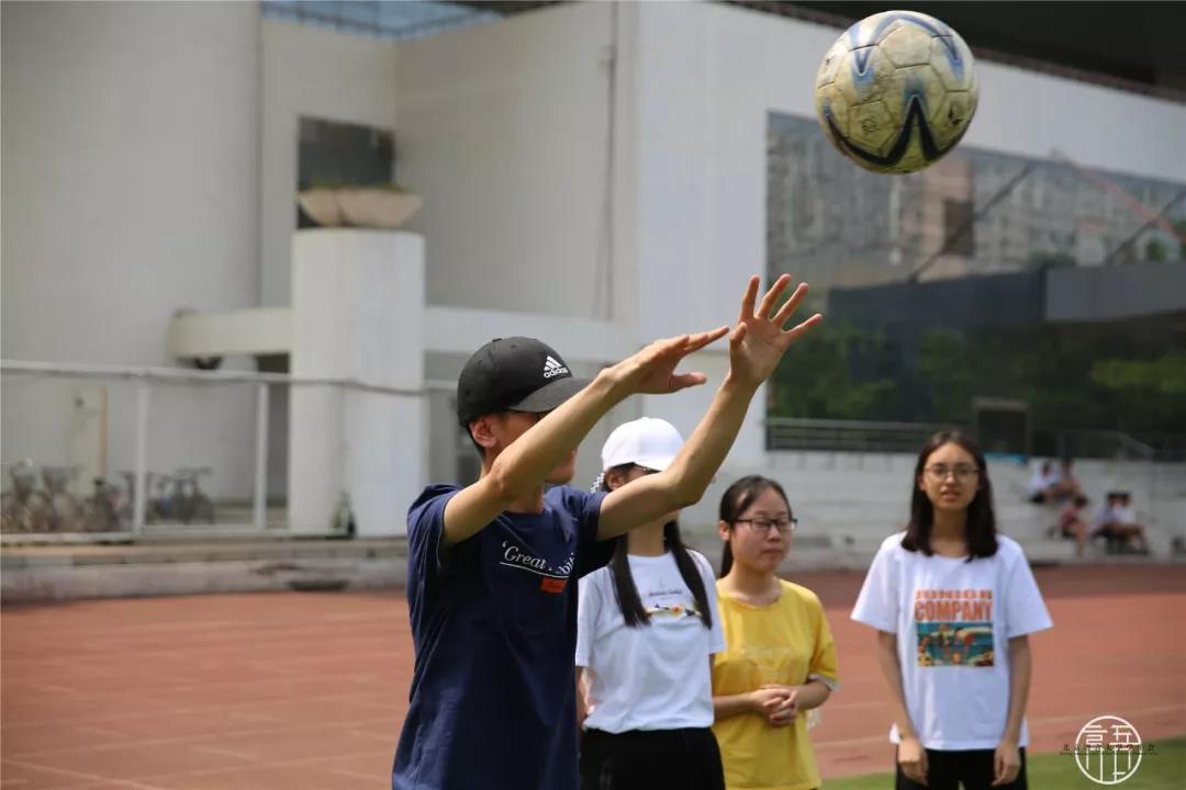 “足下生辉”趣味大赛共有8个游戏区域坐落在南操场,每个游戏区都设有力量与技巧共存,个人能力与团队配合兼具的趣味小游戏,如一位队员遮住双眼,其他队员用语言帮助其射门的“盲人足球”;或是一人手抛球,一人停球的“停手抛球”;再比如同时要求灵活与速度的“绕杆接力”。