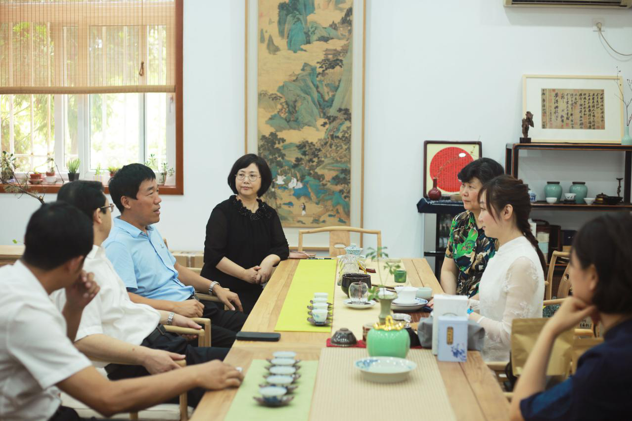 迟兰英主任对刘国红同志一行来北语茶学堂观摩教学表示欢迎,并介绍了汉语速成学院与茶学堂的相关课程情况。迟兰英主任表示,希望通过此次交流,进一步加强大学与政府间的合作互动,在语言教学、文化教学、学生教育、文化继承与发展等方面开展交流共建,期望以语言文化为纽带,搭建起交流合作的桥梁,发展传统文化教育事业,弘扬以茶为代表的中华民族优秀传统文化。