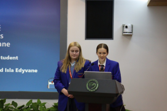 澳方领队Michael Stephens先生作为教师代表发言。他对这一项目和项目所取得的成就给予了高度评价,认为该项目在促进澳中双方的文化交流方面,是国际合作项目中不可多得的成功案例。学生代表Sienna Cross和Isla Edyvane也与大家分享了学习和参访北京名胜古迹的经历。