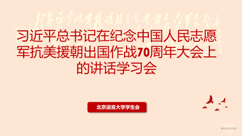 10月23日晚,纪念中国人民志愿军抗美援朝出国作战70周年大会重要讲话学习会通过线上直播的方式顺利举行。全体学生会成员参加会议,共同学习了习近平总书记在纪念中国人民志愿军抗美援朝出国作战70周年大会上的讲话。
