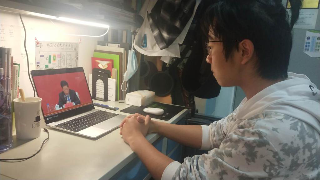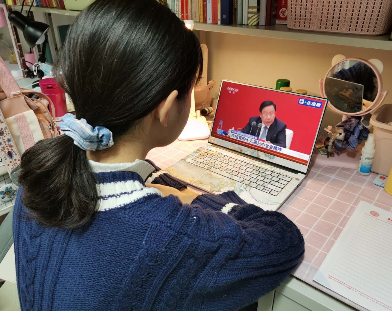 10月31日,北京语言大学学生会成员于线上共同学习了十九届五中全会精神。