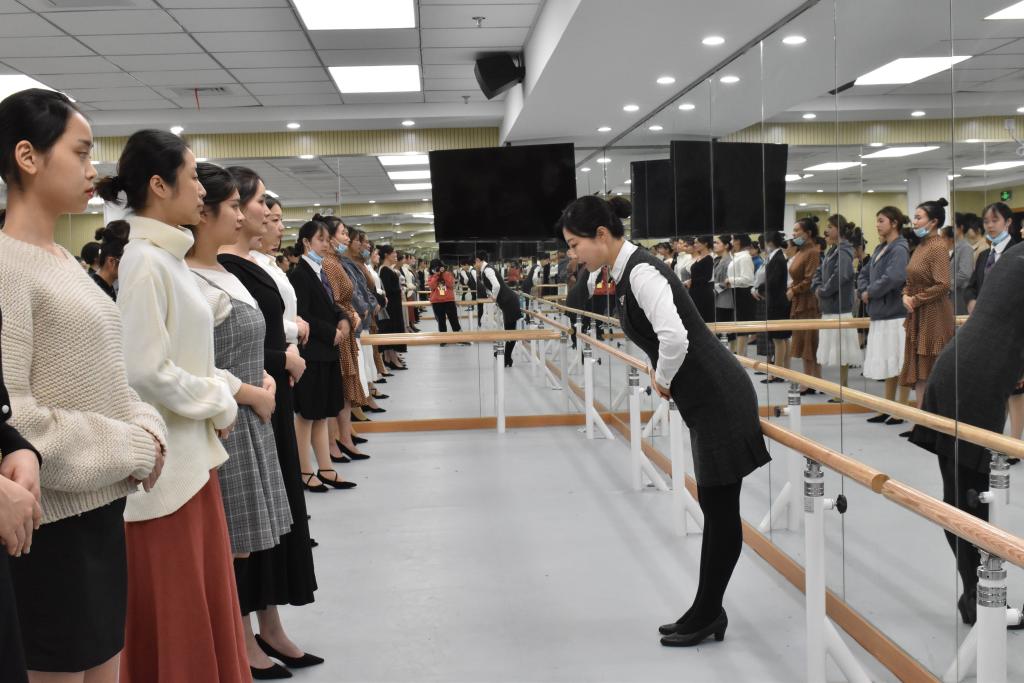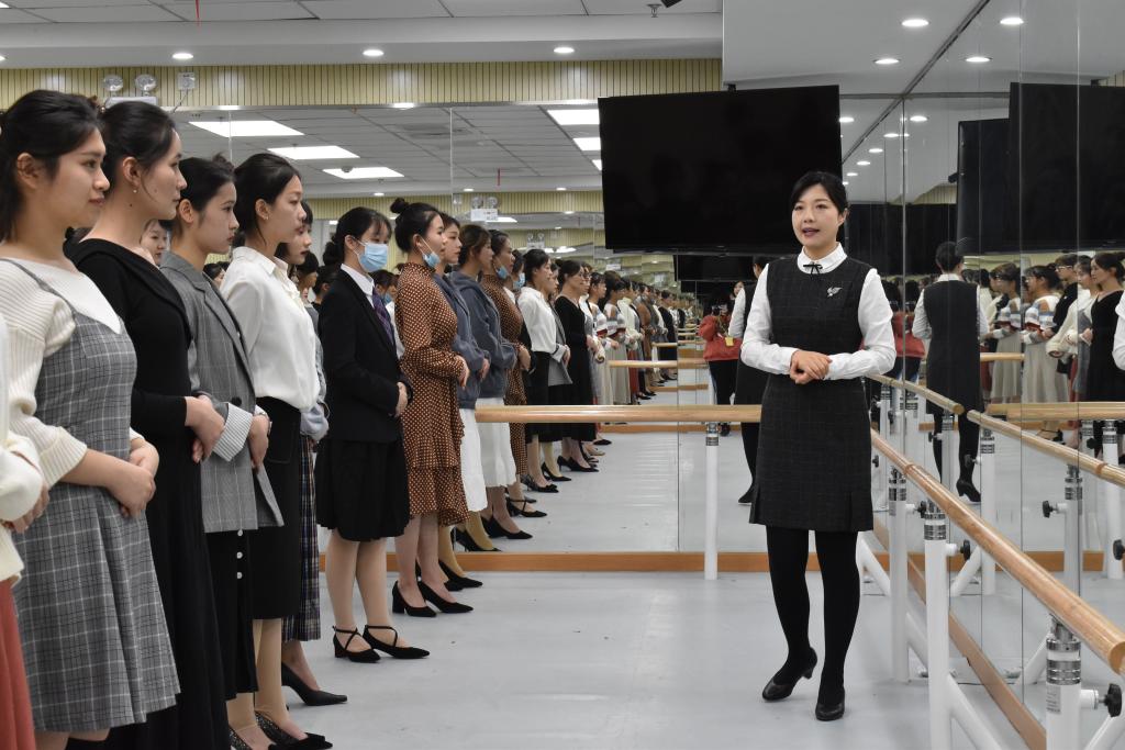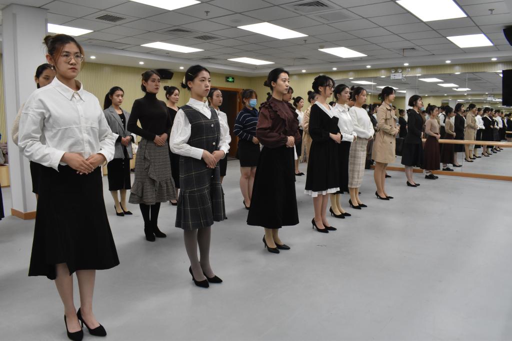 一个好的礼仪团队,不仅有要有整齐的服饰和妆容,在接待过程中也应注意身高序列,给人一种整体上的舒适感。郑老师就为队员们讲解了鞋、服饰和仪表以及妆发细节的要求和意义。如:正式场合应该化淡妆,口红颜色不宜太鲜艳,头发要盘起来,高度与眉毛齐平,指甲修整,美甲颜色款式不宜太夸张等。