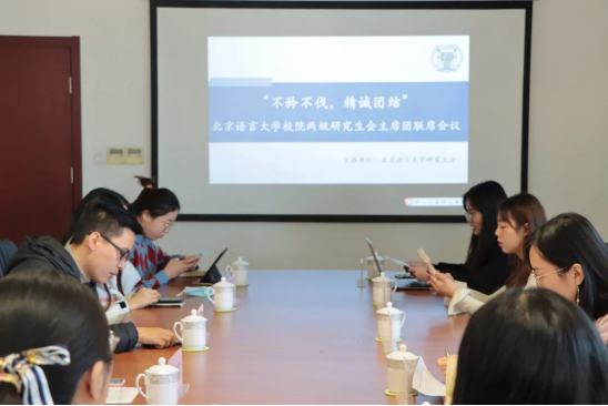11月27日,北京语言大学2020年校院两级研究生会主席团联席会议于综合楼1006会议室举行。校团委副书记张晴老师及校院两级研究生会主席团成员出席本次会议。