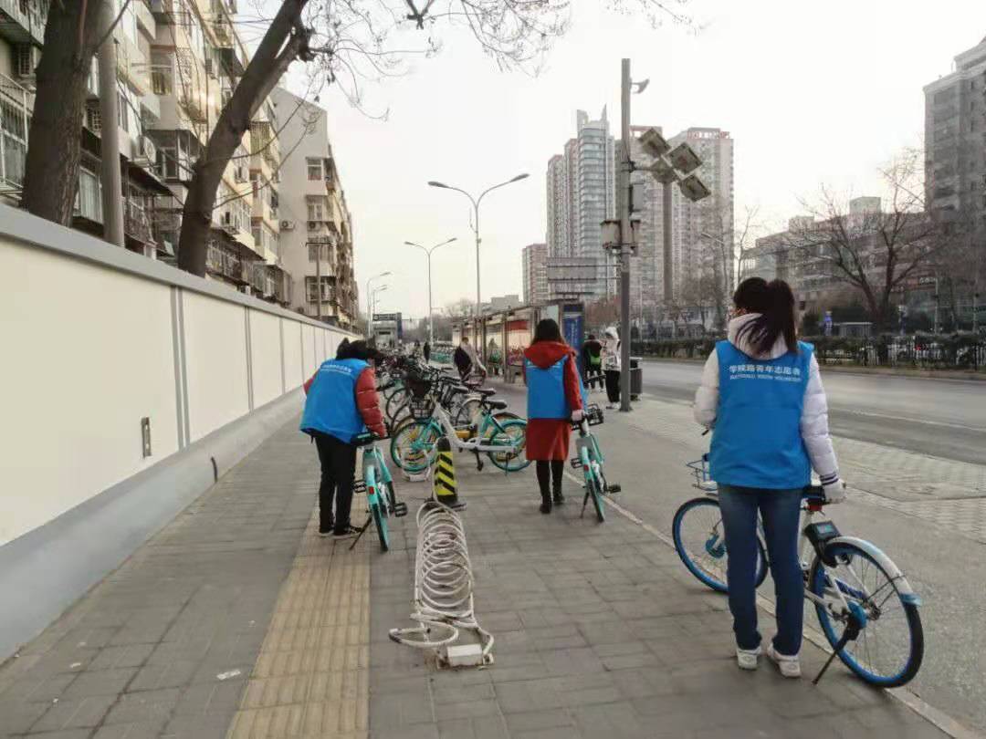 志愿者们分为两组,分别负责五道口和六道口两个地区的共享单车摆放工作。到达指定地点后,她们换上志愿工作服、戴好手套,便积极投入到了工作岗位中。经过细致的分工,志愿者们明确了各自的负责区域。虽然天气十分寒冷,但这丝毫没有削减志愿者们的工作热情。