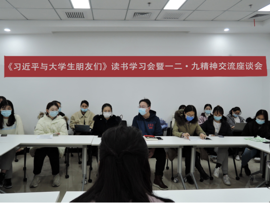12月9日中午12:40,《习近平与大学生朋友们》读书学习会暨一二·九精神交流座谈会如期举行,校团委书记杨天乔老师、副书记张晴老师、实践教育中心主任邹泺铱老师、谷羽桐老师与校团委和五大学生组织学生干部参加本次会议。