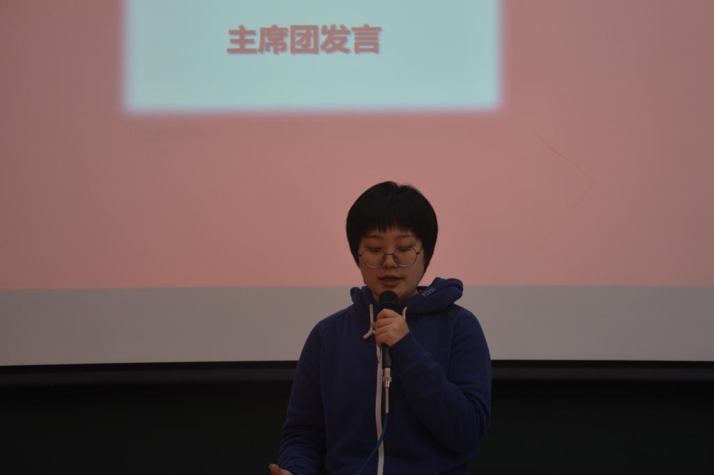 校团委副书记张晴老师对上学期学生会的工作进行了简要总结,并希望同学们在以下三方面继续努力:一是投入度。期待同学们积极投入学生会工作角色,全面提升自我修养,自觉、高效地完成工作任务。二是领悟力。希望同学们能透彻地领悟每一份工作要点,考虑周全,用心策划工作方案。三是成长性。在集体任务中要学会及时反省总结,感受自我成长。