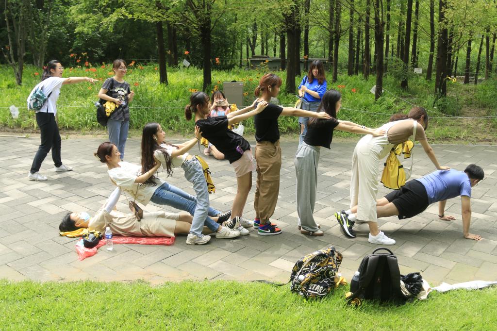 奥森公园绿意盎然,一片生机勃勃。同学们在领队带领下来到素拓场地,在跟随教练完成准备活动后,大家被随机分成六个小队,开始进行此次“最强战队”闯关任务。各位队员化身“极速精兵”,利用新型手机团建软件,探索完成各关卡任务,共同探寻公园文化,传播绿色、健康理念。大家跟随导航和纸质地图,寻找“神秘朝华台”以及0km出发点,随后根据图片任务指示,团队成员合作完成瑜伽、平板支撑等动作,利用植物叶片进行创意拼图……同学们踊跃参与,各组成员积极配合,彼此信任,大家团结在一起,用聪明才智挑战一切不可能。此次活动还结合奥运文化进行出题,让同学们在完成任务的过程中更加了解奥运发展史、奥森公园的生态设计以及奥运健儿们的拼搏精神。大家在活动中加深了对彼此的了解,收获了真诚的友情,体会到素拓中所蕴含的青春力量与无限热情。