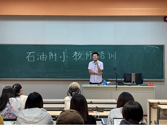 他还对本次实习项目进行了简单的介绍。石油附小实力雄厚,环境优美,生源良好。项目本质上是海淀区高校支持中小学发展,学校开设的课程在石油附小已保留多年,虽尚未形成成熟的课程体系,但已然树立了北语“招牌”。