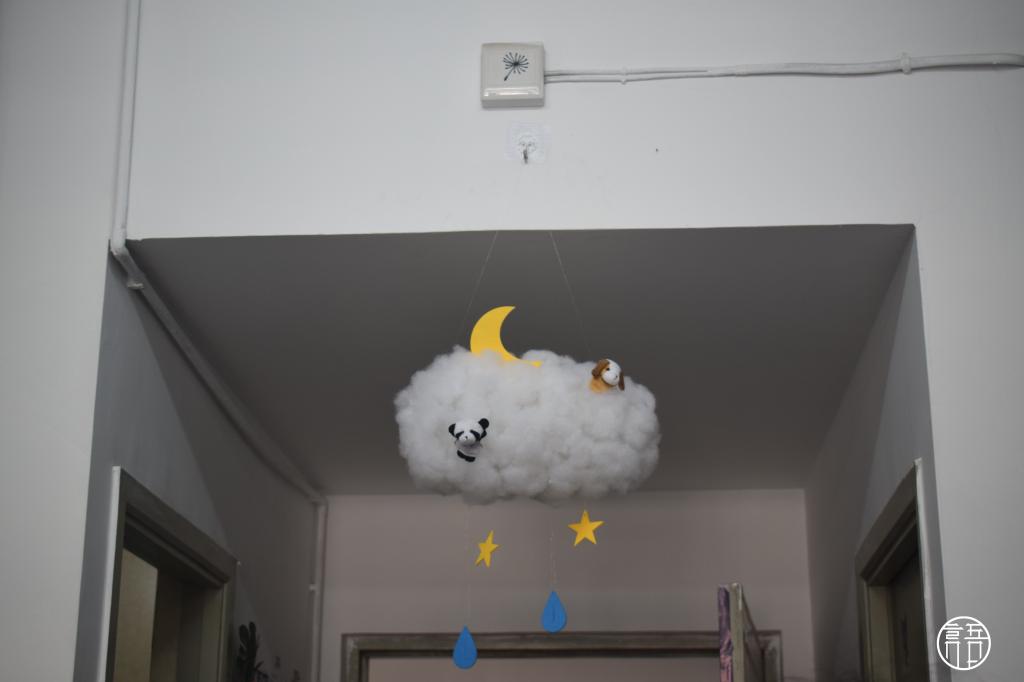 手工制作的门牌,展示着寝室的门面与特色;挂在门上的压花提灯,增添了温暖与明亮;一个个可爱的摆件,寄托了共同的美好回忆;一个个装饰细节,让人眼前一亮,不仅展现出了同学们的心灵手巧,也引起了考察团的连连赞叹。