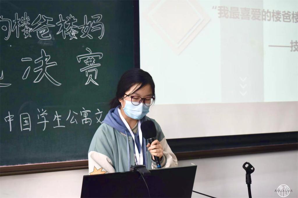 下午4时许,决赛进入尾声。后勤服务集团楼宇服务中心韩俊鹏主任进行了总结发言。他首先表示,感谢楼爸楼妈们为本次评选活动进行了用心的准备,把良好的风采展示给了同学们,也感谢同学们为本次活动的辛勤付出。继而,他肯定本次公寓文化节加深了学生与楼管间的互通和了解——同学们更加了解了楼管工作的点点滴滴;楼爸楼妈们也进一步了解了同学们的情况。至此,本次“我最喜爱的楼爸楼妈” 评选决赛圆满结束。