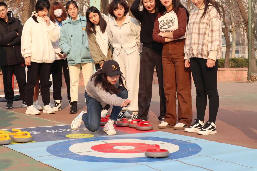 14:00,冬奥竞赛项目体验活动正式开始。比赛采取两两对抗的淘汰制,三项体验项目依次开展。在工作人员的介绍和示范之后,参赛选手进行了赛前体验和练习,逐步了解了各个比赛项目的实操技巧。随后,冰壶项目的比赛正式开始。从调整推冰壶的力度到制定比赛的战术策略,参赛选手们逐渐掌握了冰壶运动的比赛技巧。