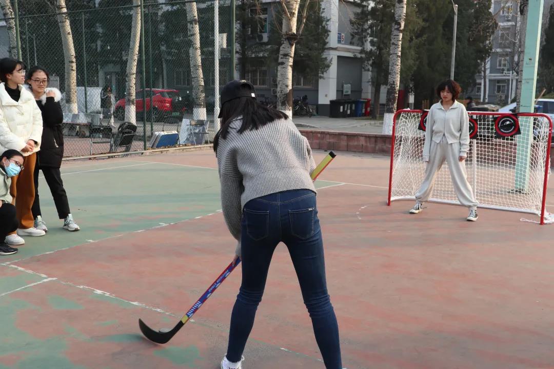 在接下来的冰蹴球和冰球比赛中,各队队员互相配合,齐心协力,不断尝试将冰蹴球踢得又稳又准的方法,共同商议击冰球和防守球门的策略与方式。现场氛围逐渐热烈,参赛选手们更是热情高涨,团队间配合也更加默契。17:30,比赛正式结束,工作人员为表现出色的队伍颁发了奖品。