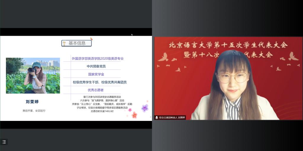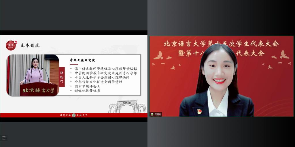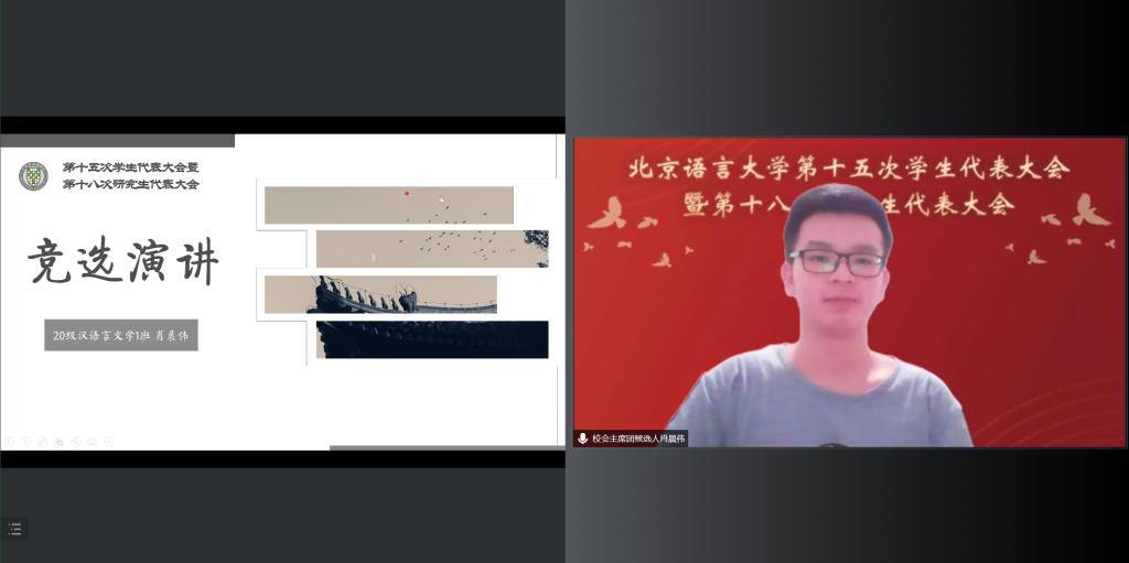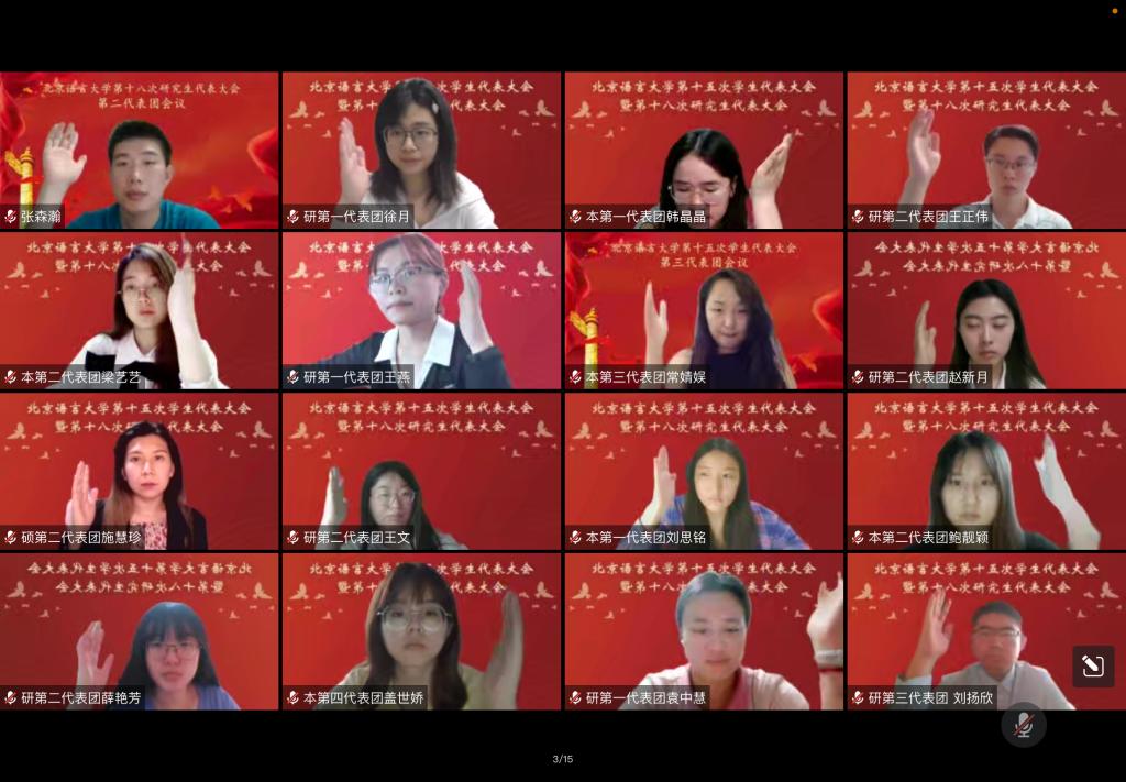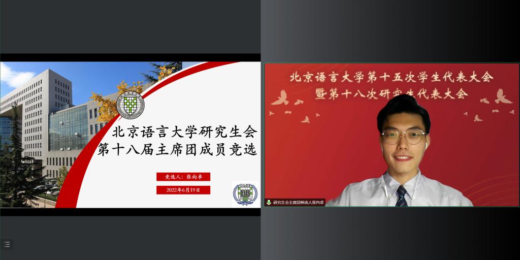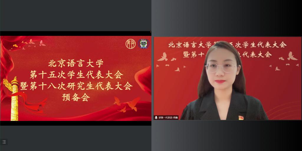 6月19日晚7时,北京语言大学第十五次学生代表大会暨第十八次研究生代表大会预备会于线上顺利召开,全体正式代表参与,校研究生会胡鑫主持本次会议。