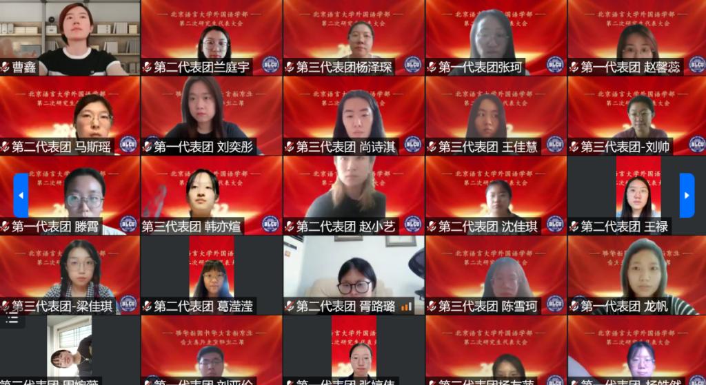 6月28日下午,外国语学部于线上圆满召开了第二次研究生代表大会。外国语学部党委副书记刘洁老师、学办主任曹鑫老师和辅导员李林凤老师出席了本次大会。校研会执行主席迟博应邀出席观摩会议,研究生代表共157人参加会议。
