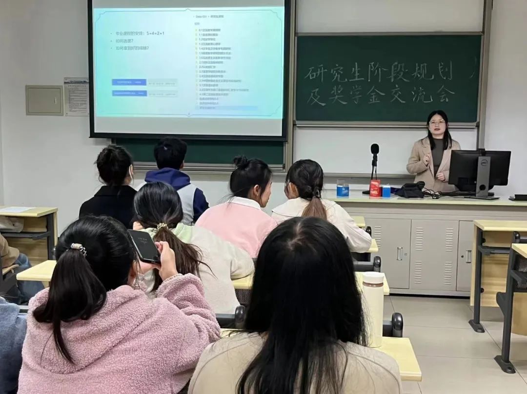 为帮助宝贝鱼们对研究生学习阶段有更明确的规划,更好解决生活中遇到的各种困难,教师教育学院团委研究生部于10月13日19时在教四楼105开展研究生阶段规划及奖学金交流会讲座,邀请了多项荣誉获得者2020级课程与教学论研究生刘翰韬、2020级语言学及应用语言学研究生易群为宝贝鱼们分享相关经验,答疑解惑。
