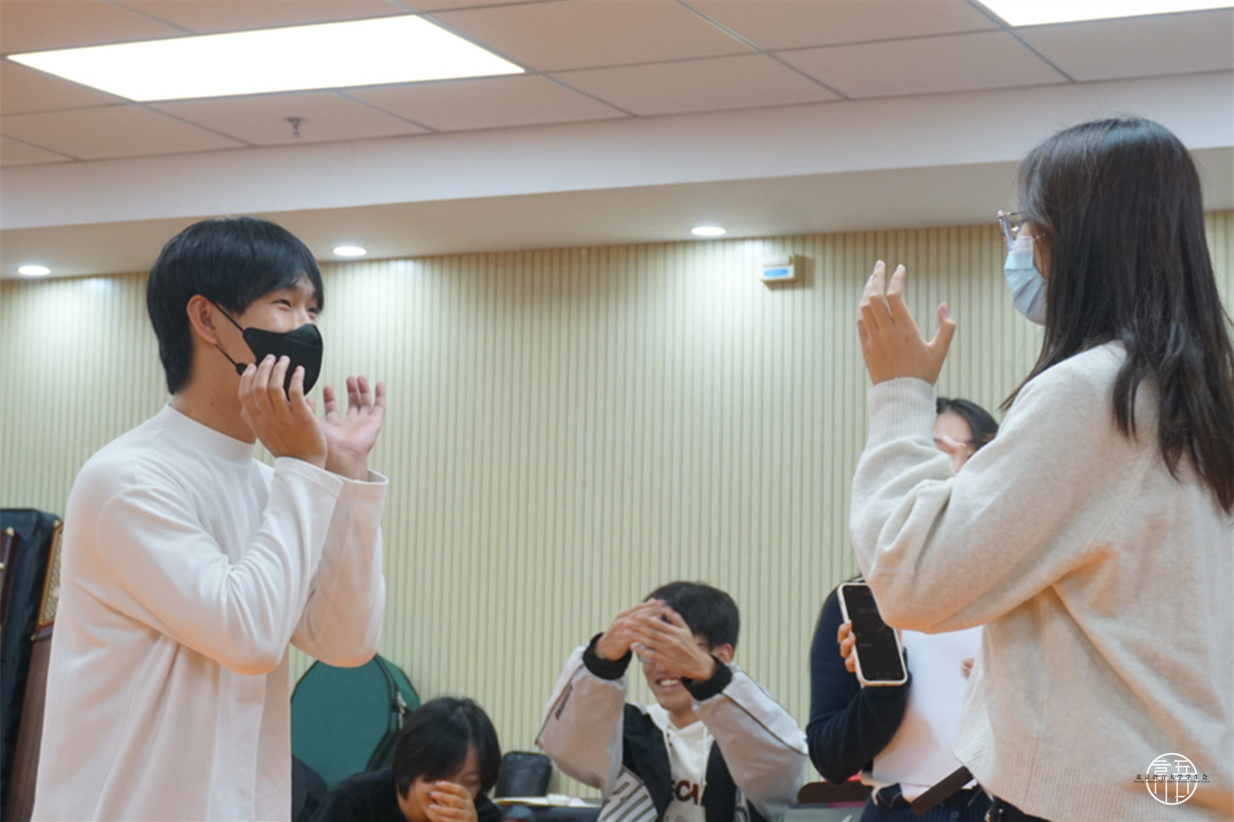 热身之后,大家继续进行游戏,凭借努力为自己的小组赢得游戏积分。通过“动作传声筒”“我是歌王”“定时炸弹”“五毛一块”以及加时赛的几轮小游戏对决,各组比分你追我赶,最终角逐出名次一、二的小组并颁发奖品。通过本次活动,校学生会成员之间的默契配合使大家互相之间更加紧密团结,强化了集体荣誉意识,促进校学生会凝聚成为一个荣辱与共的大家庭。