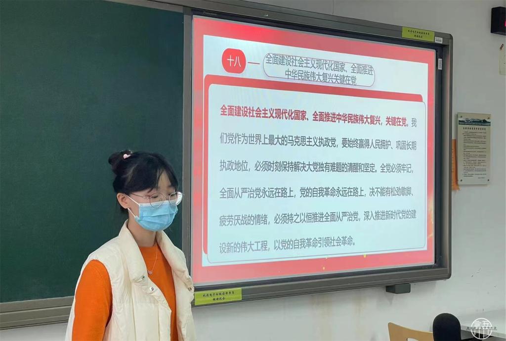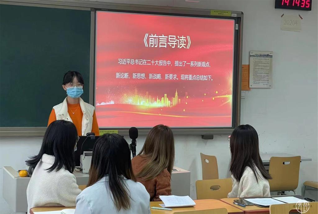 首先,校学生会主席团成员张潇予带领与会人员学习二十大报告中的新观点、新论断与新思想,并倡导青年学生干部要同习总书记强调的那样:“怀抱梦想又脚踏实地,敢想敢做又善作善成”,在日常工作中也要以党的二十大精神为指导,立志做有理想、敢担当、能吃苦、肯奋斗的青年学生干部。