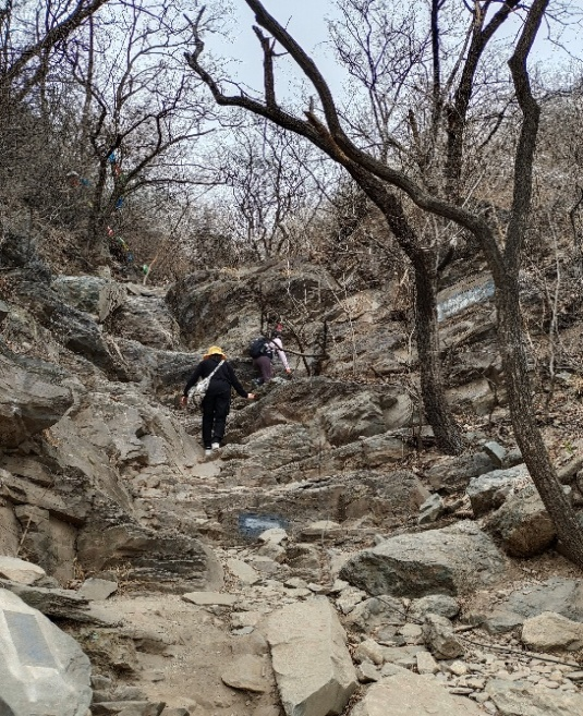 “好汉坡”为野路登山,与香山景区的登山步道相比,更为陡峭,对身体素质的要求也更高,有些时候需要手脚并用。尽管道路漫长且艰难,但在大家的相互鼓励、互帮互助下,成员们无一掉队,经过了四个多小时的徒步,在对山花遍野的赞叹和沿途的欢声笑语中,团学联成员完成了勇攀“好汉坡”的挑战,人均两万多步。