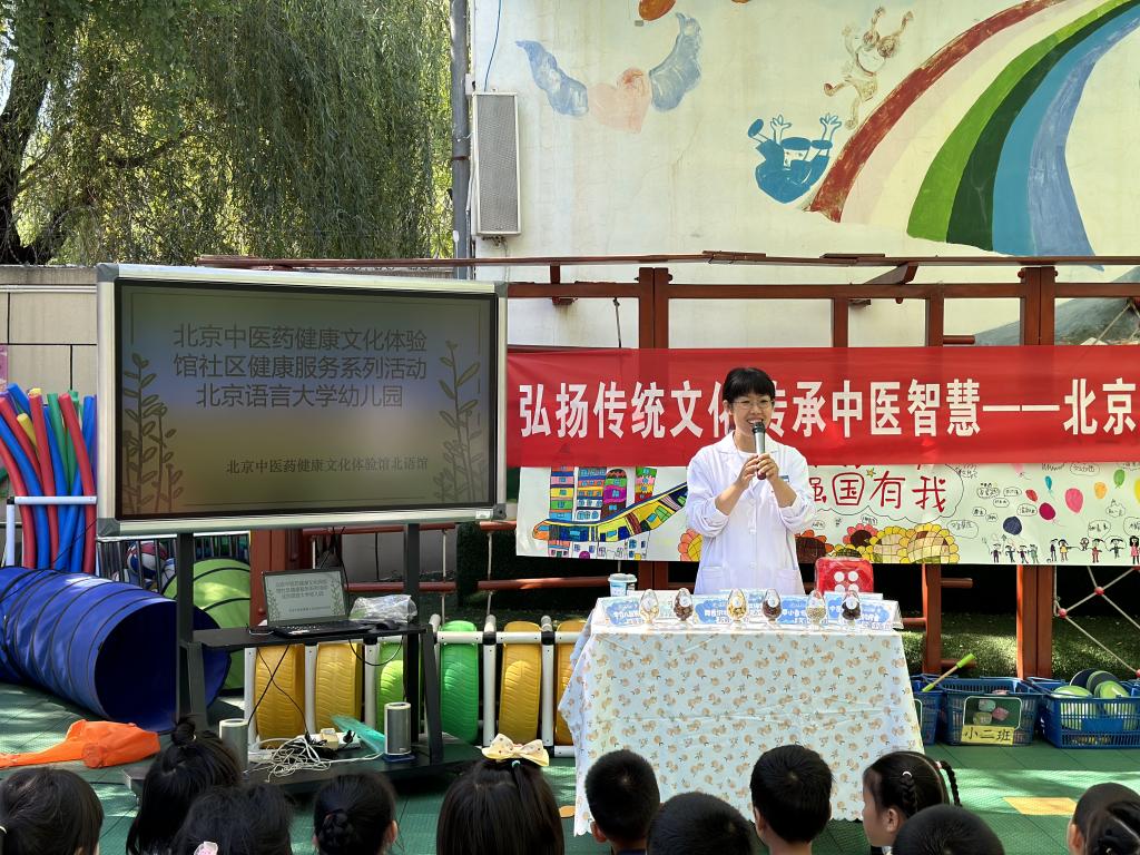 为进一步贯彻落实十四五中医药文化弘扬工程实施方案,北京中医药健康文化体验馆北语馆于6月2日走进北京语言大学幼儿园,举办了一场别开生面的、面向儿童的中医药科普活动,通过游戏互动的形式向小朋友们讲解中医知识,让中医科普知识的种子种在孩子们的心里。