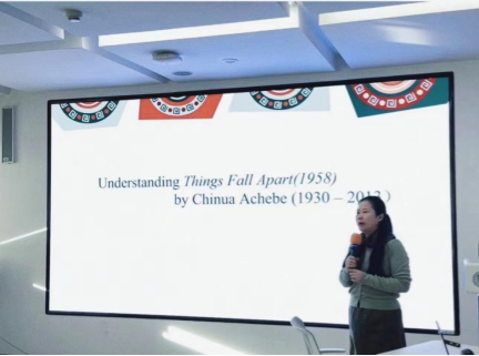 在胡老师引导下,同学们踊跃发言,谈到了自己对非洲和非洲小说的了解。通过引用在非洲发现中国瓷器和非洲观众收看中国电视节目等例子,胡老师生动地讲述了中非交流的悠久历史,并鼓励大家要培养国际化视野。紧接着,胡老师介绍了本书作者阿奇比的生平和文学成就,特别指出了非洲作家对全球文学的深远影响。