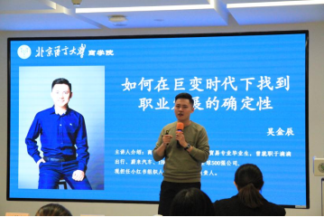 随后,吴金辰对于目前所在工作单位小红书进行了简单介绍,同学们了解到小红书是一家鼓励创新、多元化的年轻企业,是如今年轻群体当中潮流的生活方式平台。吴金辰谈到新就业环境下企业对毕业生的要求,青睐于品学兼优、能力全面、自驱上进、心智成熟的优秀学生。对于未来职业生涯规划,他结合自己大学期间在甲骨文、IBM的实习经历及北京奥运会志愿服务经历,讲到同学们不仅要注重自己的学习成绩,也要把握机会参加实习实践、参加竞赛等丰富阅历,利用课余时间通过课程辅修、参与学生工作等渠道储备技能,努力提升自我,为未来发展做好充分准备。