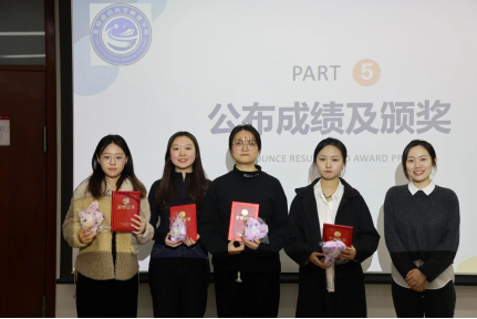 所有选手答辩结束后,工作人员进行了快速的分数统计并公布了获奖名单。颁奖环节,评委老师为获奖选手颁发奖状并送上礼品。最后,现场所有选手和评委老师共同合影留念。