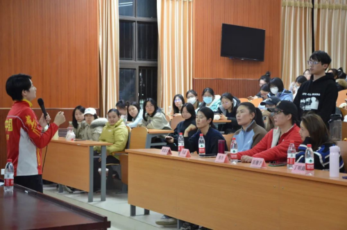 12月1日16时,由体育教学部举办的冠军系列大讲堂——“中国精神 体育力量”在主南102隆重开讲。本次分享会由奥运冠军吴静钰主讲,以自身经历为引,通过分享她的奋斗之路与冠军历程,为全体师生带来了一场极富体育精神的思政大课堂。