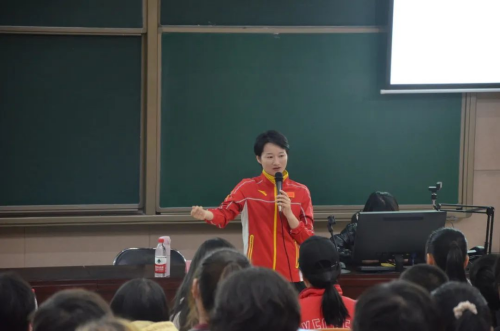 吴老师还向大家展示了她曾在训练、比赛中身体受伤的照片。她说成功从来都不简单,但很值得,自律能够延长生命,痛苦会让人更加的专注。在场同学们都深受触动,现场掌声雷动,久久不息。