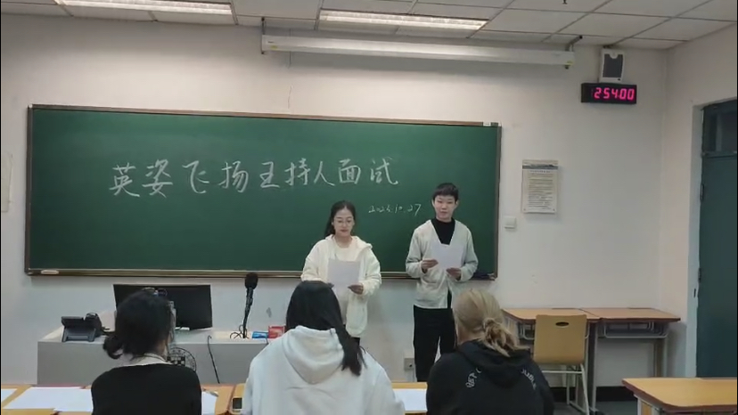 秋雨霏霏,秋风飒飒,破除渐深的寒意,又一年的英姿飞扬如约而至。10月27日中午12点40分,外国语学部英语学院2023年“逐青浪·立潮头”英姿飞扬晚会主持人海选于教一212教室顺利开展。前来面试的同学们仪态落落大方,声音清朗优美,表现出了端庄的精神风貌与良好的主持水准。