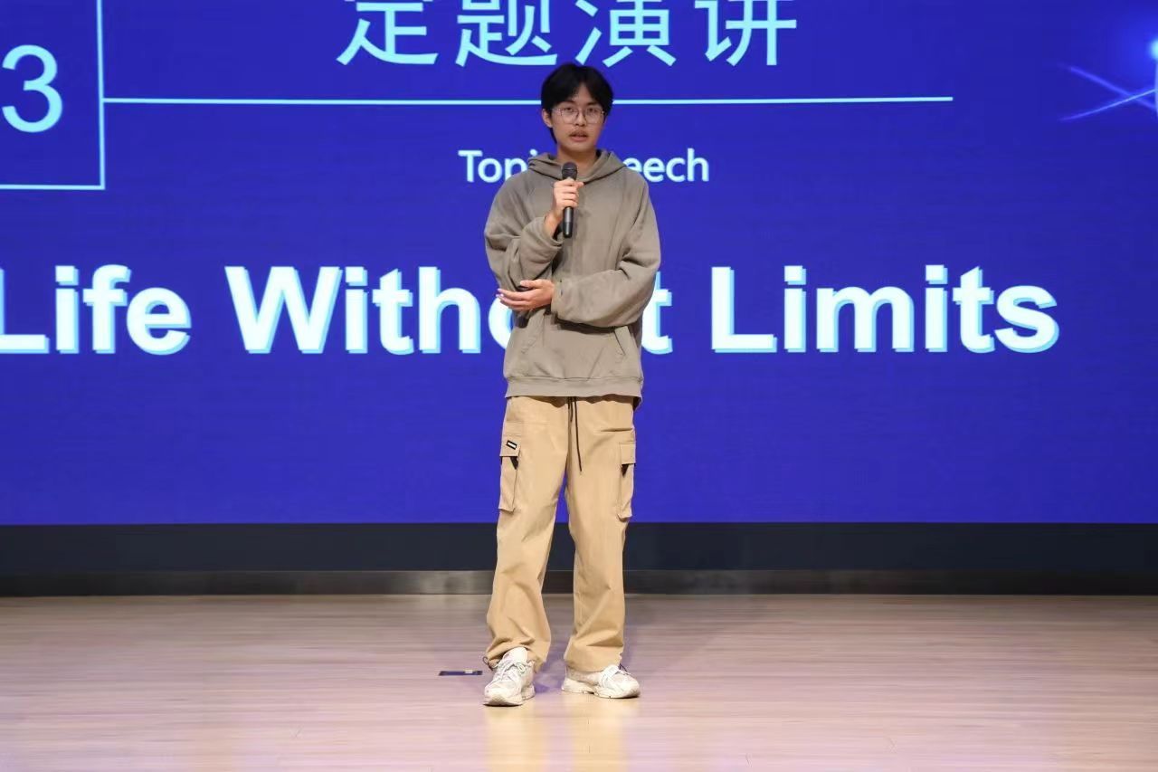 第一环节,选手们围绕主题“Life Without Limits——人生不设限”,进行了三分钟的精彩演讲。选手们有的结合个人经历,讲述了突破限制、大胆尝试,勇敢做自己的重要性;有的引经据典,展开了具体而深刻的论述;有的以问题为引,充分阐发自己的独特观点。对于评委们的提问,选手自信从容,条理清晰地表达所思所想,赢得了评委老师们的肯定和现场观众热烈的掌声。