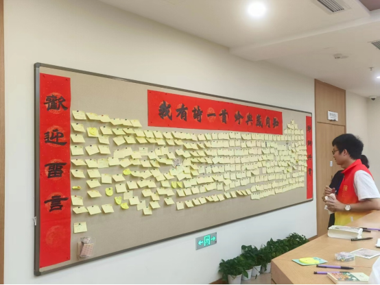 图书馆二层——春季主题“忙趁东风放纸鸢”,体验风筝涂色,展板上留言诗句。领取“春”主题明信片,盖“春”或“桃花”图案印章。