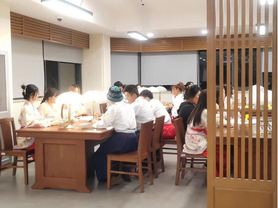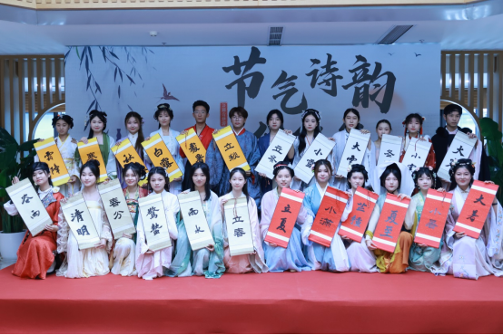 走进图书馆,古筝演奏“琴中古曲是幽兰”点燃了大家的游园热情,二十四位节气使者齐聚一堂, “明妆丽服夺春晖”,留学生们将二十四节气融入朗朗上口的诗词朗诵,“五洲无处不春风”。