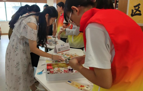 同学们在体验区制作书签