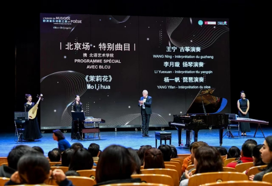 音乐会的开场曲目是奥利维耶与北语艺术学院的音乐教师们共同演奏的中国经典音乐作品《茉莉花》。曲谱由奥利维耶与北语艺术学院教师共同创作。在国际艺术家和资深专业教师的共同诠释下,在钢琴与传统民族乐器的交相呼应下,这首熟悉的旋律焕发出了新的活力,为现场观众呈现了一场融合东西方文化的精彩视听盛宴。